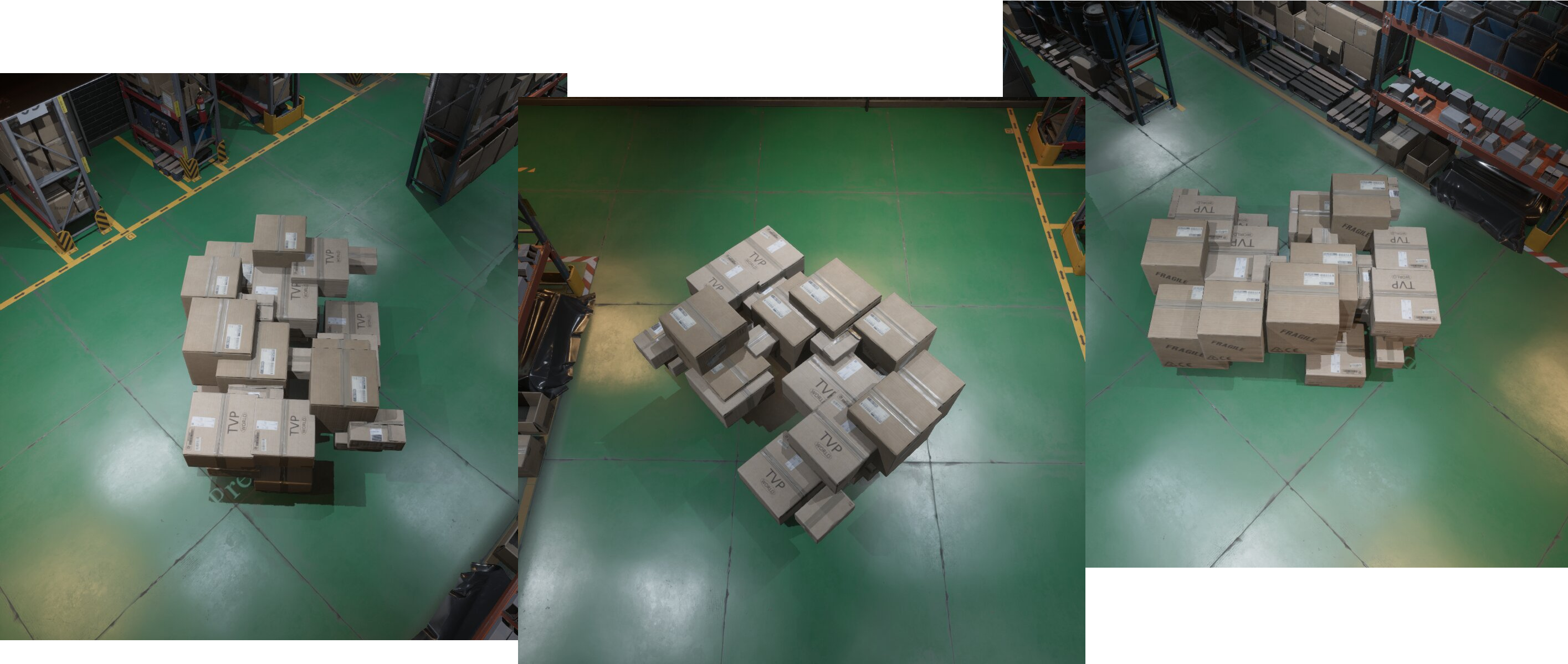 Multiple Time-of-Flight (TOF) cameras capture the scene for maximum coverage and ensure a clear view of the items.